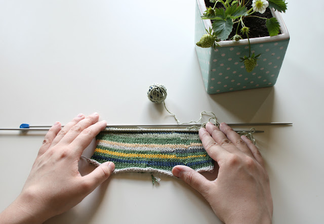 Before I went to sleep yesterday, I checked out my plants and I saw something amazing. One strawberry is getting a red colour! You can't imagine how enthousiastic I became. This is a sign for me that I'm caring for the plants in the right way. I also wanted to show you a little process of what I'm working on. I'll show you later what it exactly is. Right now I'm finishing my green tea with jasmine as a starter of this day. Have a lovely weekend!